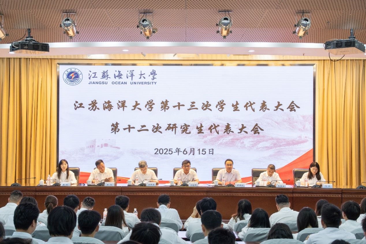 6月15日,江苏海洋大学第十三次学生代表大会、第十二次研究生代表大会举行。校党委常委、副校长郑利军,党委研究生工作部部长、研究生院院长宗钟凌,党委研究生工作部副部长、研究生院副院长秦海波,校团委副书记王衍、黄媛、付免以及各学院团委负责人、连云港兄弟院校学生会主席及全体学生代表出席本次会议。校团委书记黄吉庆主持会议。