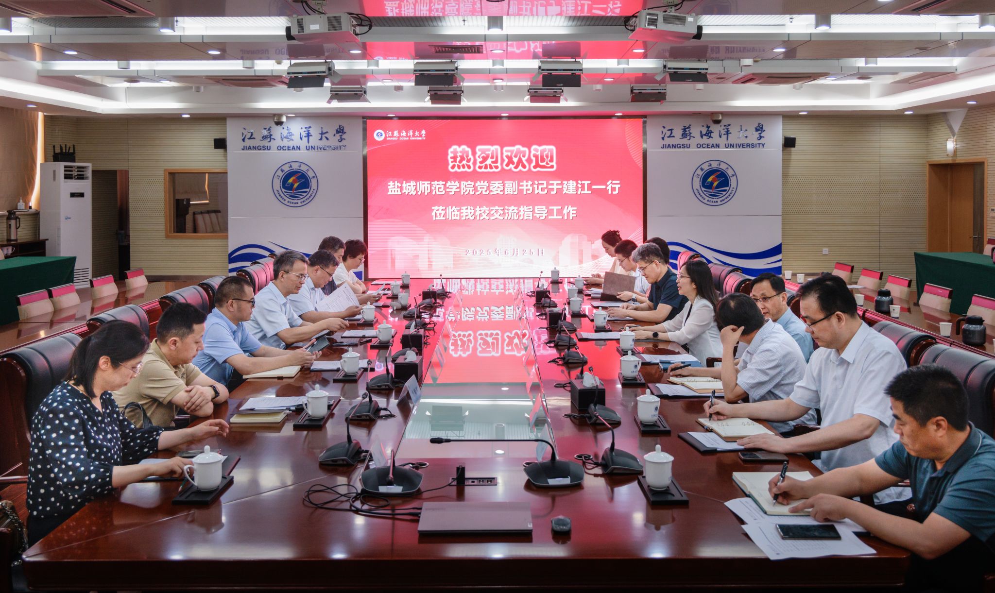 6月25日上午,盐城师范学院党委副书记于建江一行来我校调研交流。座谈会在会议中心东海厅举行。副校长金芙蓉主持会议。