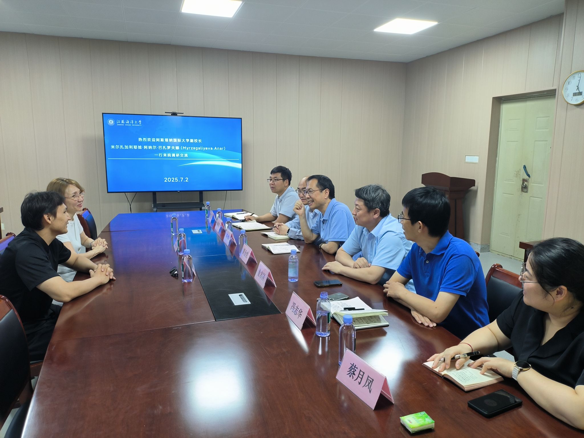 7月2日,值新亚欧大陆桥国际人才交流活动在我校举办之际,阿斯塔纳国际大学副校长米尔扎加利耶娃阿纳尔·巴扎罗夫娜(MyrzagaliyevaAnar)一行来我校海洋科学与水产学院访问交流。学院党委书记黄金虎、院长董志国,副院长高焕、冯志华及海洋科学系教师代表参加交流活动。