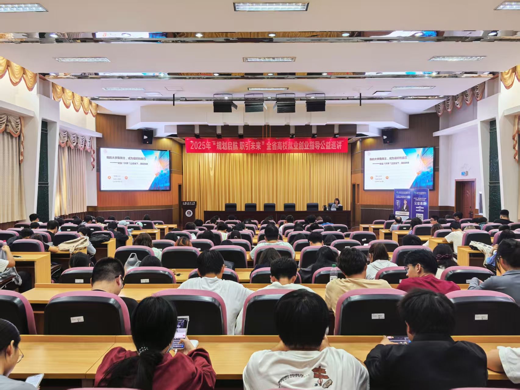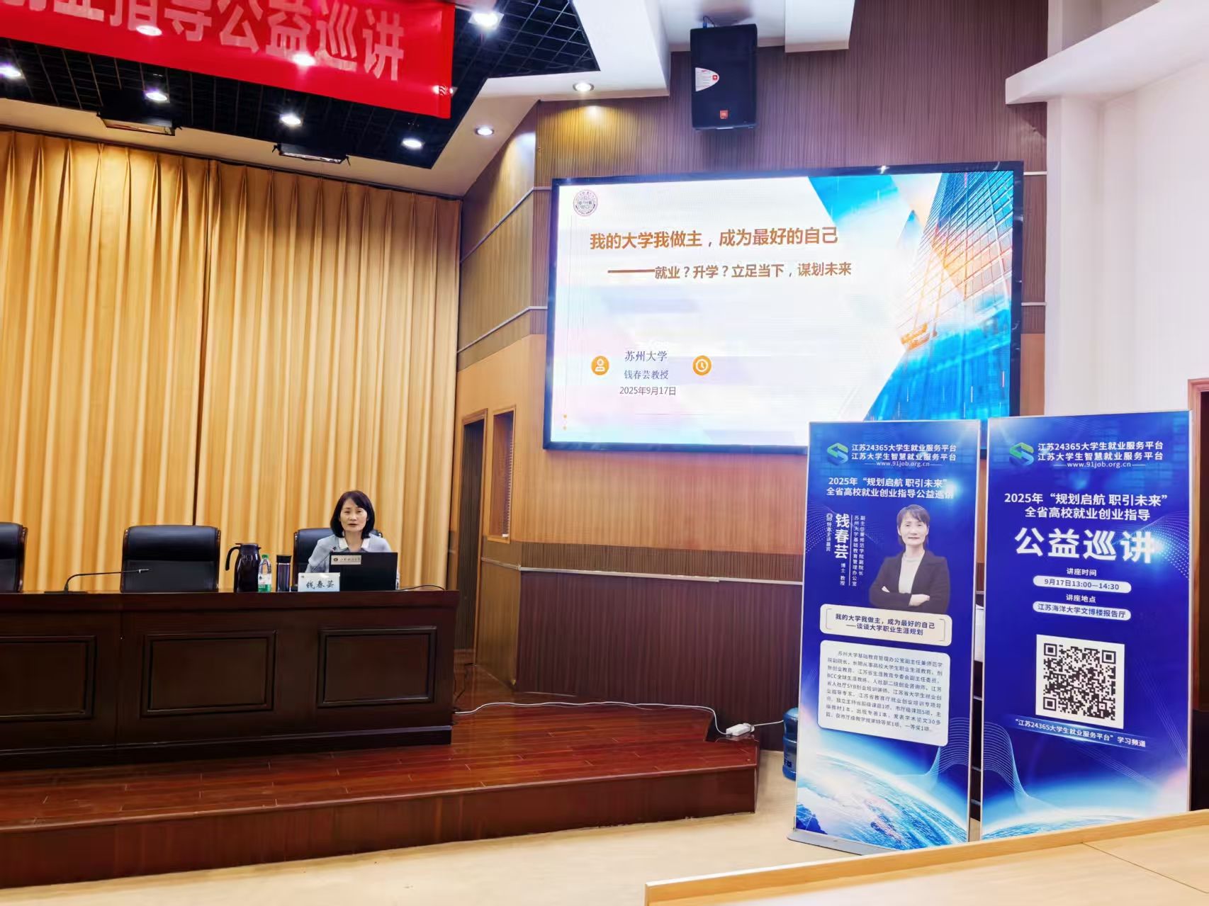 为积极响应江苏省高校招生就业指导服务中心“规划启航 职引未来”全省高校就业创业指导公益巡讲工作部署,9月17日,由我校招生与就业处承办的主题为“我的大学我做主,成为最好的自己”生涯规划专题讲座在苍梧校区文博楼报告厅成功举办。本次讲座特邀苏州大学钱春芸教授担任主讲。