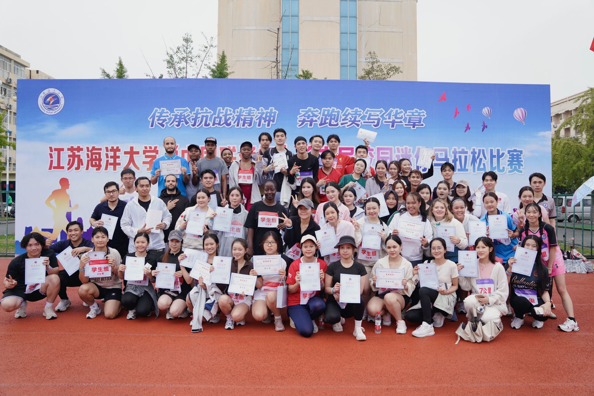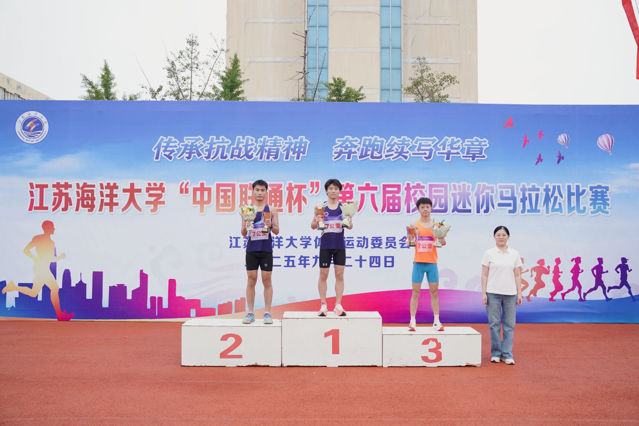 传承抗战精神,奔跑续写华章。9月24日下午,江苏海洋大学第六届校园迷你马拉松比赛在秋雨中燃情开跑。校党委副书记李梅英、副校长金芙蓉出席本次开幕式。