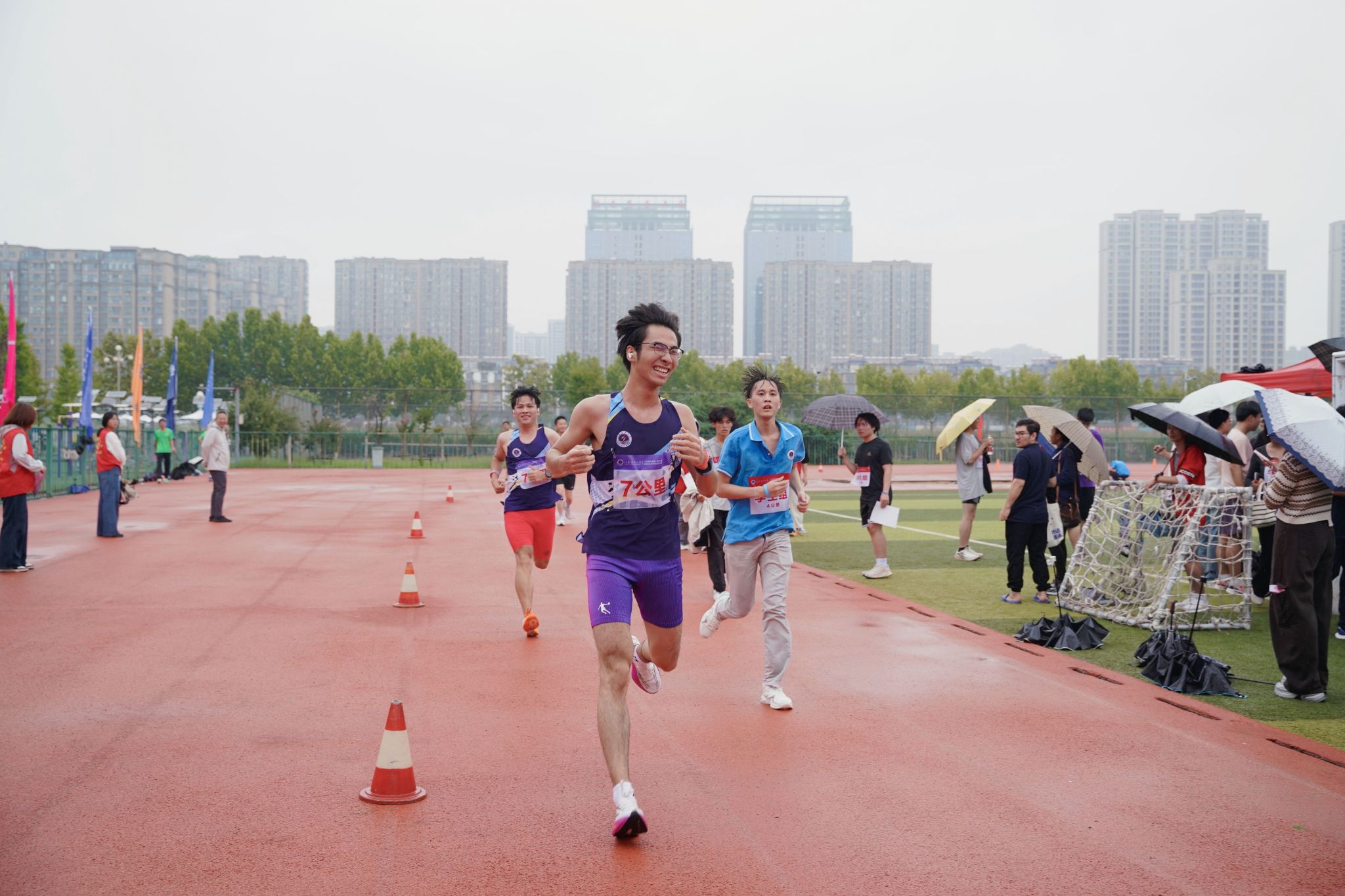 雨水打湿衣衫,却浇不灭激情,赛道两旁加油声此起彼伏。每位参赛者皆以顽强拼搏、勇于挑战的意志投入比赛,在相互鼓励中跑出友谊、跑出佳绩。他们不仅展现了挑战高负荷、高强度运动的勇气,更以积极进取、蓬勃向上的姿态,彰显出江海大师生的精神面貌。