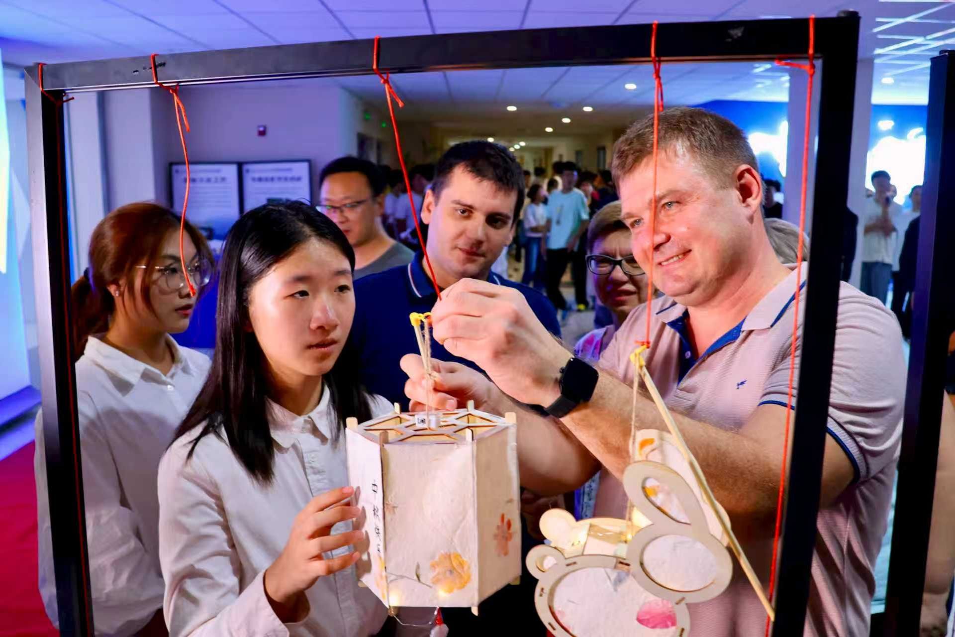 为加强中外文明互鉴和中华优秀传统文化国际传播,9月26日晚,马卡洛夫海洋工程学院以“中秋寄情共此时,丝路同叙团圆情”为主题,在文华楼6楼开展中外师生中秋文化交流活动,在沉浸式体验中传承中华文脉,在跨文化交流中凝聚育人合力,为学校打造国际化、高品质校园文化注入鲜活力量。学院团学组织联合学院语言课程社团“沃德园”主办,学院党政班子成员、中外教职工、新生代表参加交流活动。