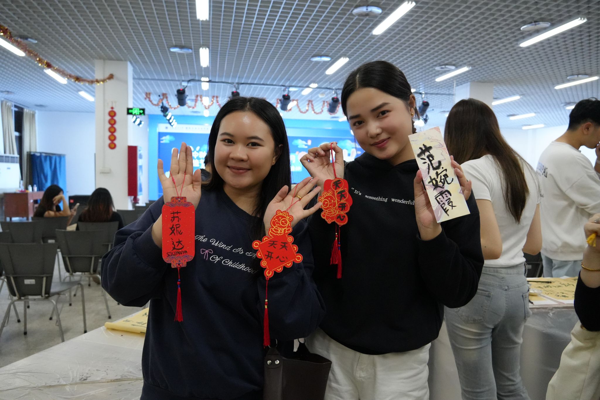 活动尾声,全体师生手持制作的漆扇、方巾、灯笼等文创作品,外籍教师身着汉服、手提花灯拍摄活动合影,用跨越国界的“团圆瞬间”,定格中外师生的深厚情谊,彰显学校“以文化凝聚人心、以交流促进发展”的国际化育人成果。