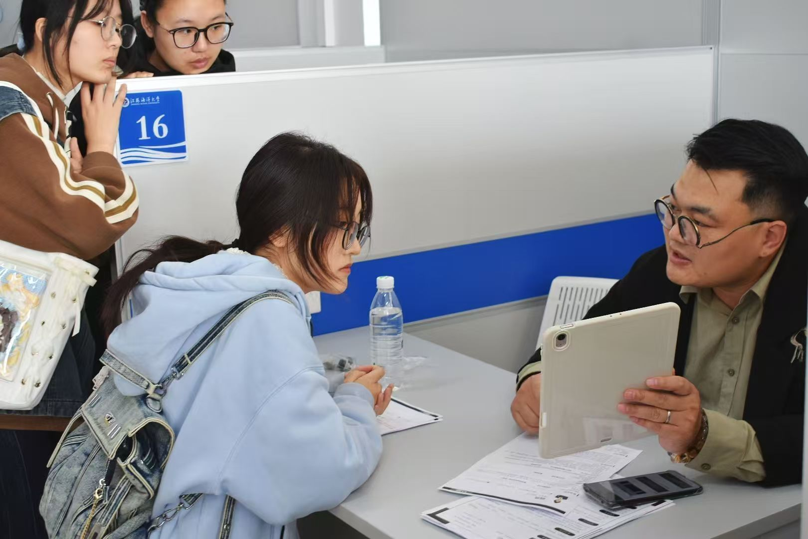 11月12日下午,江苏海洋大学苍梧校区东区筑海楼二楼就业大厅内热潮涌动、气氛热烈。由我校招生与就业处主办、艺术设计学院承办的“创‘艺’未来,职因有你”2026届毕业生秋季专场招聘会在此举行。