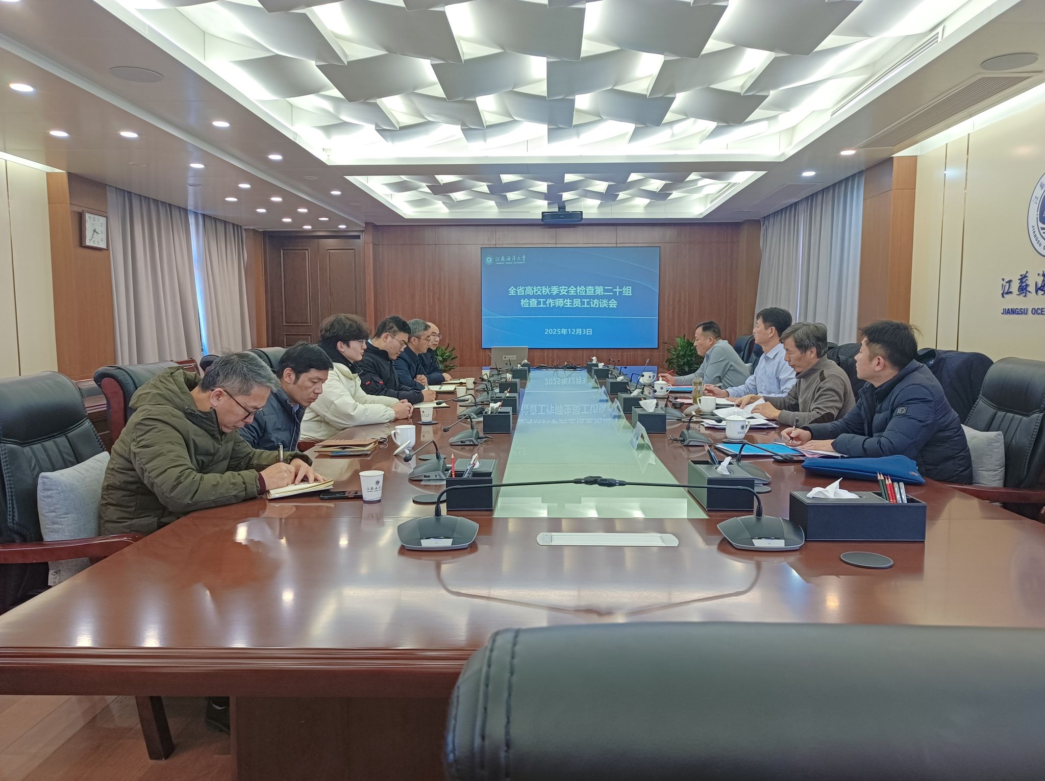 12月3日,以南京医科大学保卫处处长洪宇为组长的全省高校秋季安全检查第二十组一行4人莅临我校开展安全检查工作。学校在行政楼五楼会议室召开部署协调会。连云港师范学院、江苏财会职业学院、连云港职业技术学院、南京医科大学康达学院在我校集中参加会议。