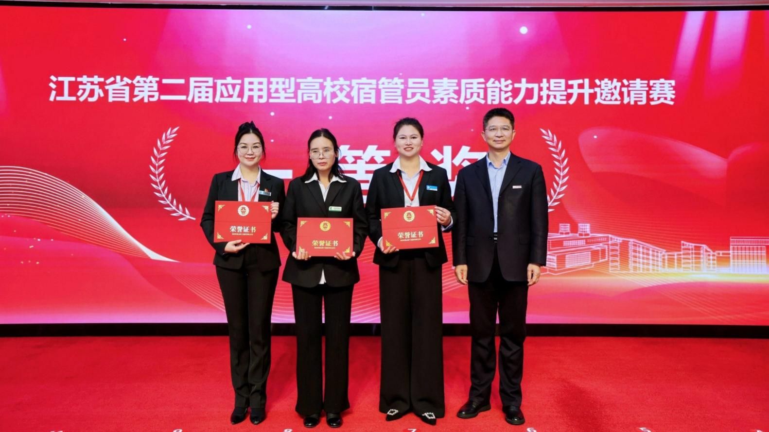 12月17日,由江苏省应用型高校“一站式”学生社区共建联盟主办的第二届应用型高校宿管员素质能力提升邀请赛,在南京工程学院闭幕。我校苍梧校区学生宿舍A6楼宿管员杨守梅以扎实专业的职业素养、丰富的实践经验,过关斩将、奋勇拼搏,最终以总分90.67荣获一等奖。