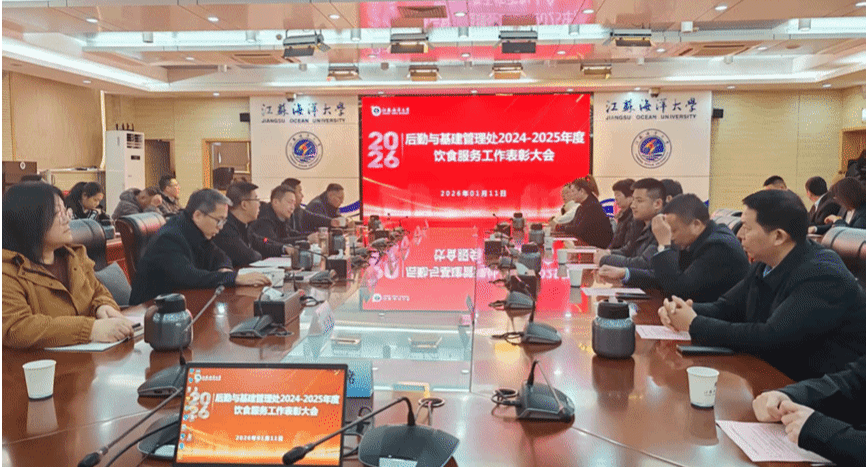 1月11日下午,后勤与基建管理处2024-2025年度饮食工作总结暨评优表彰大会在会议中心东海厅召开。副校长郑利军出席会议并讲话,后勤与基建管理处处长冯源、饮食服务中心全体教职工、饮食中心合作经营单位和获奖代表代表参加大了本次大会,会议由后勤与基建管理处副处长兼饮食服务中心主任张长胜主持。