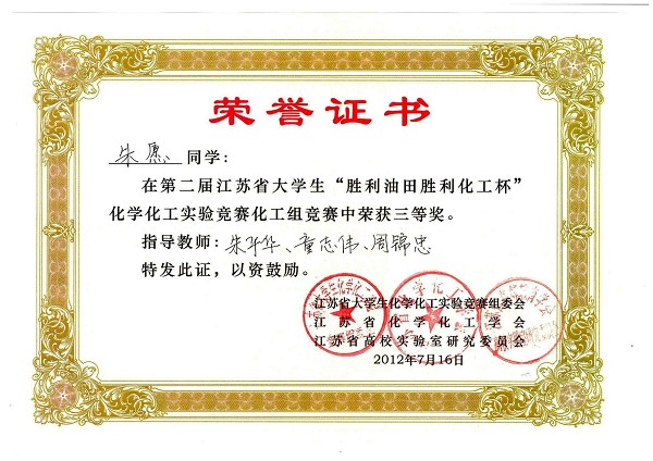 我校化工学院选派了6名同学分别参加了化学组和化工组的竞赛,经过紧张的角逐,材料化学091的李丹同学荣获化学组竞赛三等奖,化学工程与工艺091的朱愿同学荣获化工组竞赛三等奖,化学工程与工艺092的陆晨同学获得化学组竞赛奖。化工学院院长童志伟、副院长马卫兴和葛洪玉、副书记周锦忠等6名老师带队参加了本次竞赛,马卫兴、夏海涛、程青芳、朱平华等老师对6名学生做了精心的教学指导。