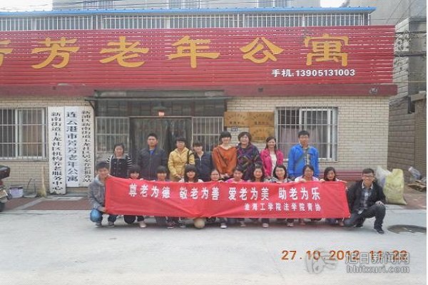 10月27日上午8点半,法学院青年志愿者一行约20人,带着礼物乘车到玉龙花园的芳芳老年公寓进行“关爱老人、奉献爱心”的活动。这次活动持续了月三个小时,志愿者们从献爱心活动中得到了很多感悟,取得了良好的活动效果。