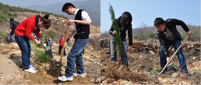 上午8时,东港学院志愿者与《港城365》栏目组工作人员、全福出租汽车公司党员爱心车队成员以及爱心网友一同向目的地孔雀沟出发。到达现场后,工作人员对大家进行分组后,东港学院志愿者便迅速领取工具与树苗,挽起衣袖热火朝天地干了起来,刨坑、放树苗、培土、浇水整个过程一丝不苟,有条不紊。植树过程中,该院志愿者们克服土干、地硬等困难,认真植好每一棵树苗,并在树苗上挂上自己的许愿卡。