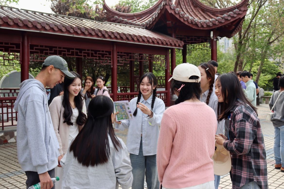 本次挑战赛全程贯穿苍梧校区,以“花”为核心线索,精心设置了丰富的闯关及隐藏任务,将汉语学习与文化体验、团队协作深度融合。启动仪式后,各队队长依次领取地图、明信片及队伍名牌,一场充满趣味与挑战的汉语比拼正式开启。汉语默写、花名“萝卜蹲”、“唱花歌”、手工、插花、“挽剑花”、“背花诗”、“走花路”八个闯关环节以及“寻花友”、“拍花照”、“找花卡”三个隐藏任务亮点纷呈、各具特色,不仅加强了留学生们的汉语词汇积累,也让留学生们在歌曲韵律和动手实践中体会汉语文化中“花”的意象,感受中国诗词、武术等传统文化魅力,同时记录下校园的春日美景,进一步凝聚团队力量,在团结协作中收获知识与快乐。