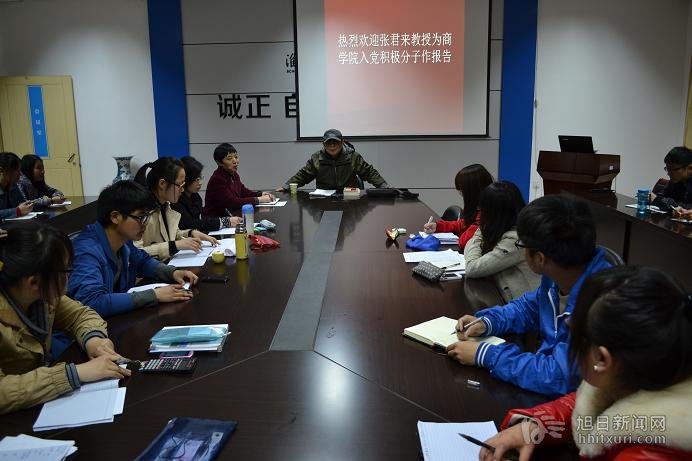 4月11日晚,商学院党校邀请法学院(马克思主义学院)退休教师、商学院关工委副主任张君来教授为入党积极分子作报告,报告会由商学院党委书记杨天华主持,商学院党校相关负责老师以及70名入党积极分子一起聆听了报告。