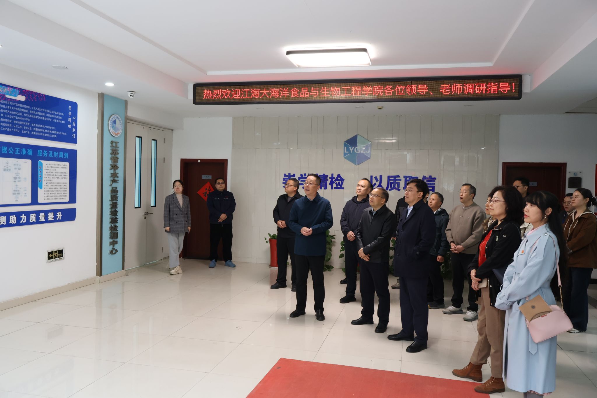 随后,学院一行前往江苏省海洋食品质量监督检验中心。中心负责人详细介绍了其在检验检测服务、标准研制、技术研究、科技服务等方面的核心职能,带领大家参观了各类专业检测实验室,介绍了海洋食品质量安全检测的前沿技术、标准体系与操作规范。参观过程中,双方围绕人才培养、课程建设、科研合作、成果转化等方面进行了深入交流与探讨。