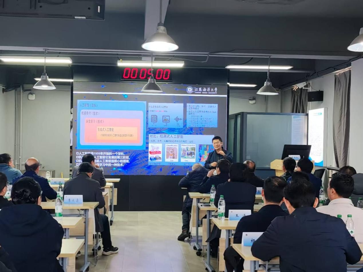 参观结束后,专题培训正式开始。陈劲松围绕“人工智能简介”“深度思考与高效应用”“人工智能幻觉”以及“AI在企业生产与管理中的应用”四个模块展开系统讲解。从强人工智能与弱人工智能的区别出发,指出当前生成式人工智能本质上是“智能工具”,核心价值在于让机器更聪明地完成特定任务。在高效应用环节,重点介绍了“三段式提示词模板”,强调深度思考和精准指令是高效使用AI的关键。针对“人工智能幻觉”现象,分析了模型自信生成错误答案的原因,提醒学员保持理性判断。在企业应用部分,结合预测性维护、智能质检、生产调度优化等实际场景,生动展示了AI在降本增效方面的显著成效。