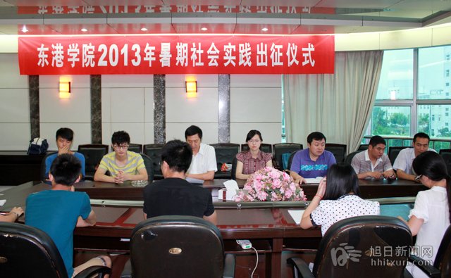 7月3日上午,东港学院2013年暑期社会实践出征仪式在该院行政楼三楼会议室举行。东港学院党委副书记万金店,社会实践带队老师李守刚、刘占山、苏成兄、包家官及社会实践团队代表参加了出征仪式。