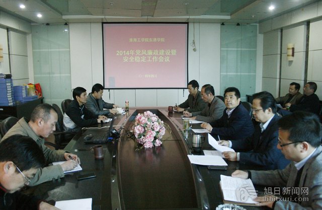4月11日,东港学院召开2014年党风廉政建设暨安全稳定工作会议。该院院长纪延光主持会议。该院全体院领导和全院中层干部出席会议。