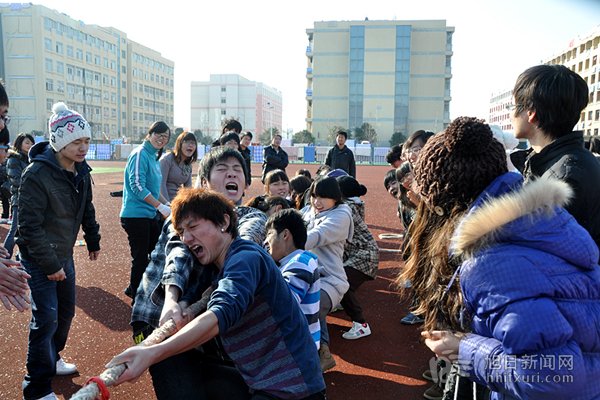 此次拔河比赛是由文学院学生会体育部承办,旨在增进各班级之间的相互了解和认识,增进班与班之间的交流和感情。虽然天气寒冷,不时吹起阵阵冷风,但是同学们火热的激情却丝毫不减。“大家一起玩才热闹呢!”大一小王在赛后乐呵呵地说,丝毫不在乎寒冷的天气。