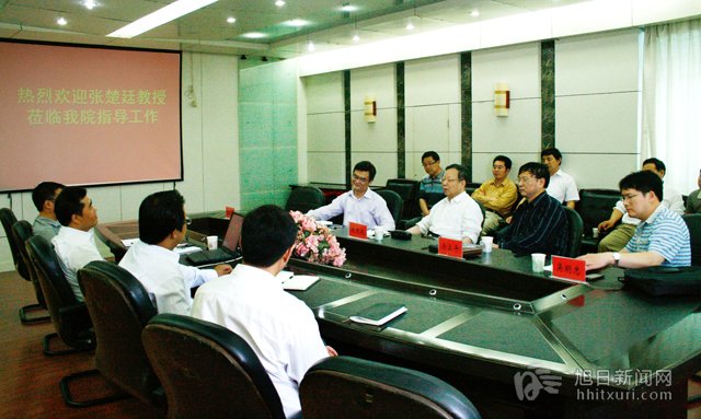东港学院纪延光院长向张楚廷教授介绍了该院办学基本情况,近几年来推进以“四选制(选专业、选课程、选教师、选学制)”为核心、以导师制和书院制为依托的本三完全学分制改革的基本思路、主要做法和初步成效。他说,张楚廷教授到东港学院指导工作,给东港学院提供了非常难得的学习提高的机会。