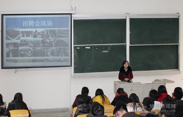 12月18日下午,东港学院在D4-101教室举办2014届毕业生就业指导讲座,邀请连云港伍江数码科技有限公司人资部经理司淑丽女士就“大学生如何应聘”为该院毕业生传道解惑。东港学院党委副书记万金店、学工办负责人、各书院负责就业工作的辅导员与近200名毕业生一起聆听了讲座。