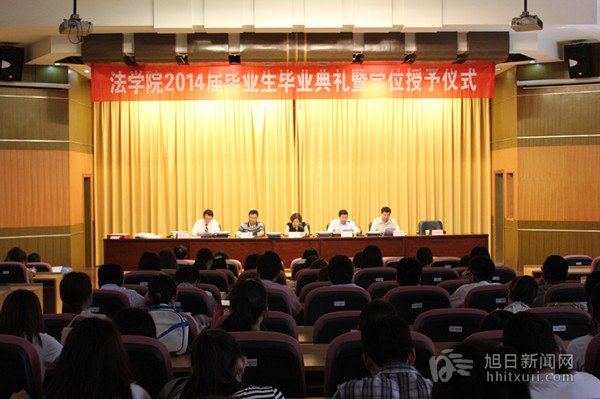 毕业典礼在庄严的国歌声中开始,法学院党委书记吕振华宣读了《关于表彰2014届优秀毕业生的决定》,副院长陈兴发宣读了《关于颁发2014年“考研奖”的决定》,副院长魏范青宣读了法学院2014届本科毕业生和学士学位授予名单。随后,学院领导为优秀毕业生颁发了荣誉证书。