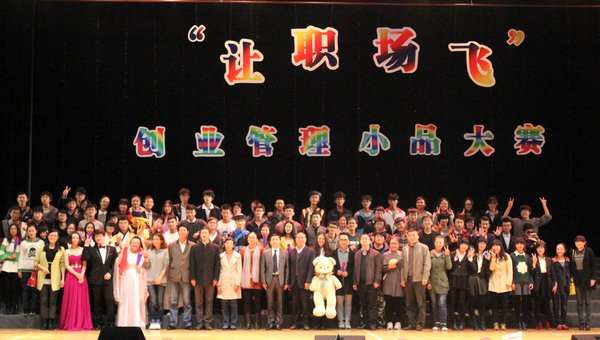 11月1日,商学院首届“中佳杯”让职场飞创业管理小品大赛在苍梧校区大礼堂隆重举行。本次大赛由商学院工商管理系、商学院团委主办,未来管理者协会承办,企业模拟运行工作室和未央话剧社协办。商学院党委书记杨天华,商学院院长吴价宝,校团委副书记赵求勇,江苏中佳居民服务有限公司副总经理李海凤女士,工商管理系主任徐永其,企业战略管理研究所所长陈国华担任此次比赛的评委,商学院副院长孟力强,财务管理系主任张瑞龙等系主任、辅导员应邀出席了本次比赛。