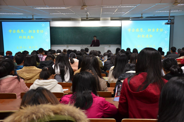 讲座一开始,杨书记语重心长地告诫同学们仅1400天的大学生活屈指可数非寸金可买,从而一步步引出本次讲座“感恩、责任、进取”的主题。接着,围绕“学会感恩”这个主题,杨书记讲述了歌曲《感恩的心》的背后故事并赞扬了伟大科学家霍金身残志坚仍然感恩生命的可贵精神,希望同学们对“滴水之恩当涌泉相报”这句古理铭记于心。