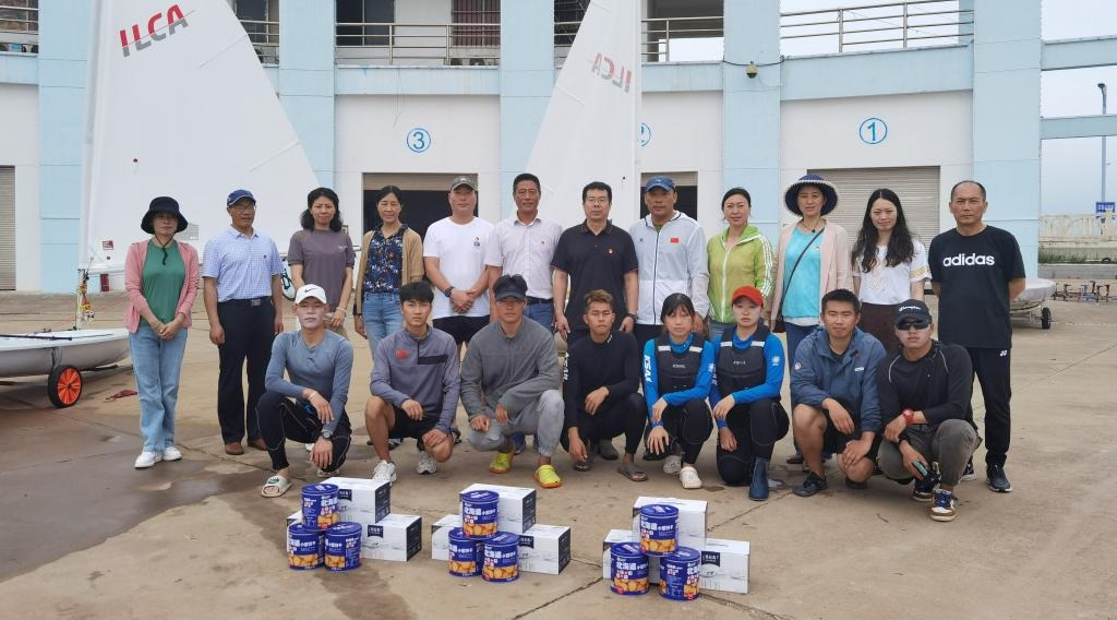 宣誓仪式结束后,大家乘车来到东西连岛江苏省体育局海上训练基地,看望参加第十四届全国学运会帆船比赛的队员,老师们与队员进行了亲切的交流,询问了他们的生活和学习情况,并送去了慰问品,体育学院院长赵宏给同学们提要求,希望大家合理分配好学习和训练时间,刻苦训练,力争取得佳绩,为江苏省和学校争光。