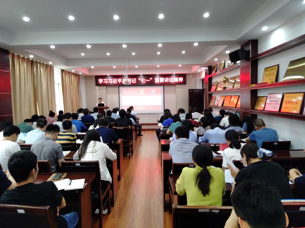 7月7日下午,文法学院在文渊楼314会议室举行学习习近平总书记“七一”重要讲话精神报告会,吴价宝书记作了“学习习近平总书记在庆祝建党100周年大会上的重要讲话”的辅导报告,报告会由副书记王国银主持,文法学院全体教职工参加。