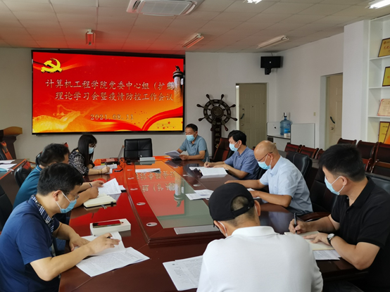 按照学史明理、学史增信、学史崇德、学史力行的总体要求,坚持党史学习教育铭于心、践于行,8月11日上午,计算机工程学院党委在计算机楼306会议室召开党委中心组理论学习会暨疫情防控工作会议。学院党委班子成员、全体党支部书记参加了会议,会议由学院党委书记唐瑶主持。