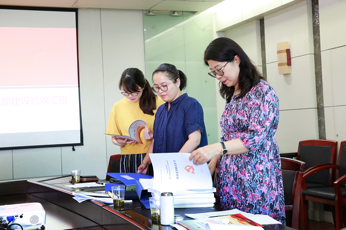 在听取汇报后,验收组详细查阅了相关材料和基础台账,并实地考察了样板支部建设阵地。