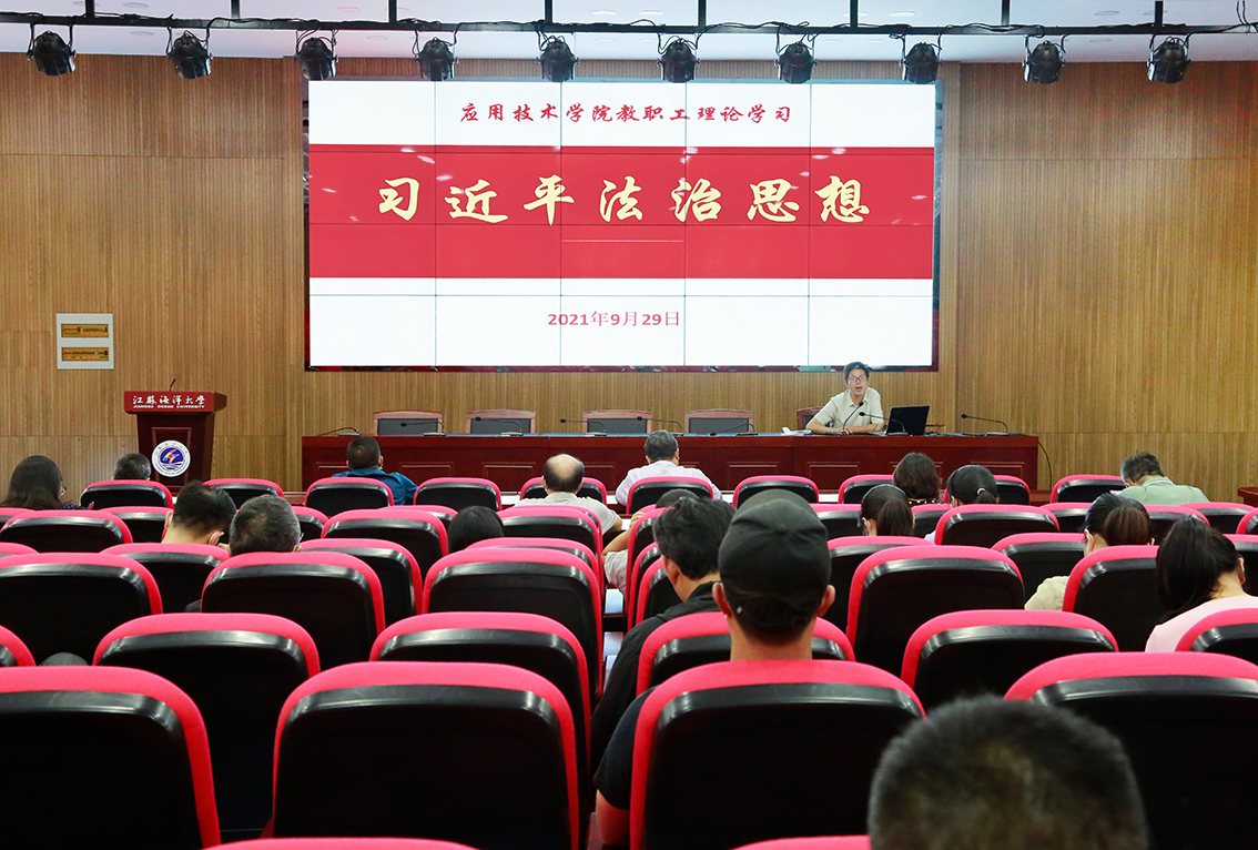 9月29日下午,应用技术学院在敦行楼报告厅举办教职工集体学习会,深入学习习近平法治思想,同时,开展网络安全教育。学院党委书记赵求勇主讲。