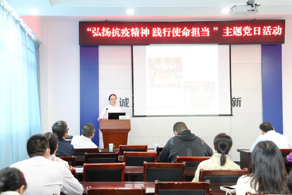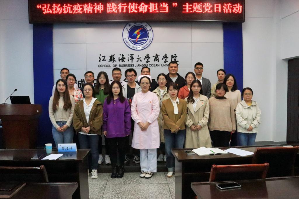 为落实在师生党员中开展“两在两同”建新功行动部署要求,持续推进党史学习教育走深走实,10月13日下午,机关党委第十党支部联合商学院金融学专业学生党支部于商学院会议室开展“弘扬抗疫精神,践行使命担当”主题党日活动。本次活动邀请到连云港市中医院樊建林同志做抗疫事迹报告。支部全体党员聆听了报告,会议由党支部书记张志浩主持。