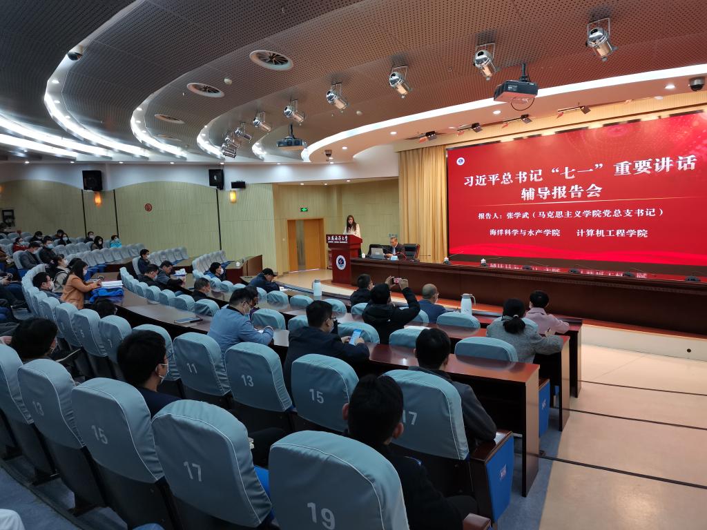 10月20日下午,海洋科学与水产学院与计算机工程学院在会议中心黄海厅联合举办了习近平总书记“七一”重要讲话辅导报告会,报告会邀请江苏省委讲师团成员、连云港市委宣讲团成员、校党委理论宣讲团成员、马克思主义学院党总支书记张学武作专题辅导报告。会议由计算机工程学院党委书记唐瑶主持,海洋科学与水产学院和计算机工程学院全体教职工聆听了报告。