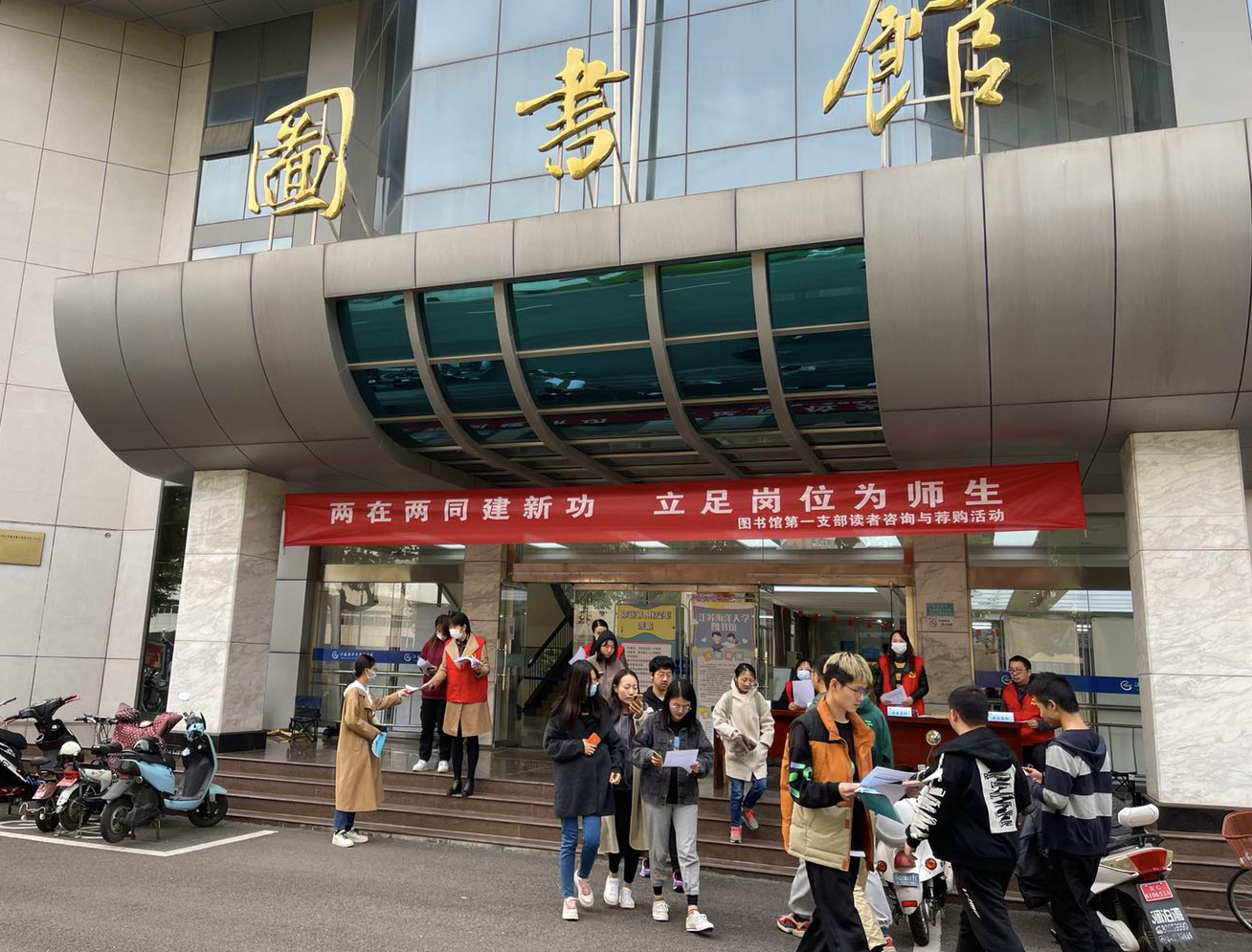 为了以实际行动践行两在两同建新功,进一步增进了图书馆与读者的沟通交流及相互理解,使读者更加了解了图书馆的服务和资源,图书馆第一党支部于10月26日下午在图书馆东馆一楼大厅举办了“两在两同建新功 立足岗位为师生” 读者咨询与荐购活动,这是图书馆改进管理水平和提高服务质量的又一重要举措。