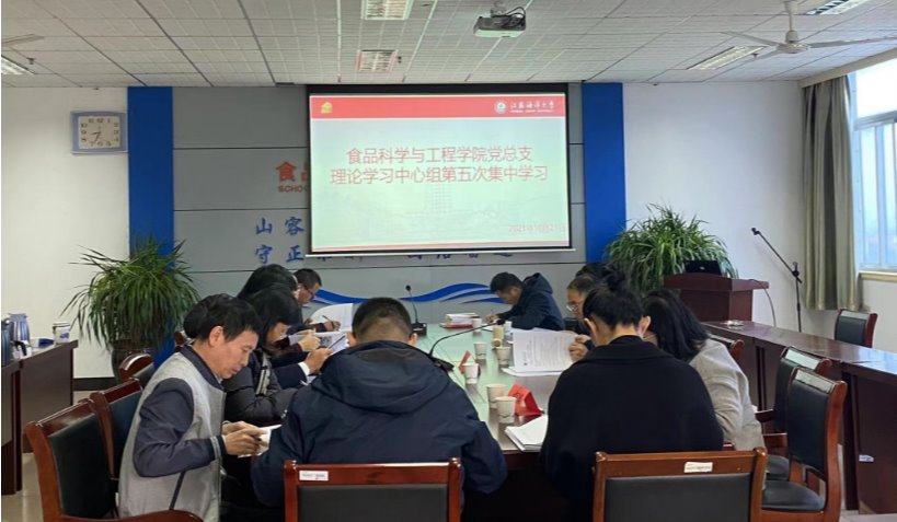 10月21日上午,食品科学与工程学院党总支理论学习中心组第五次学习在主楼606会议室进行。校纪委书记陈先宏出席学习会,学院党政领导班子成员、全体支部书记参加学习。学院党总支书记田德勇主持会议。