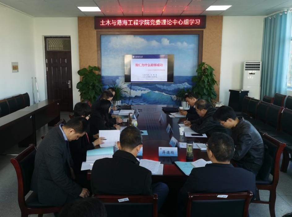 11月11日上午,土木与港海工程学院党委理论中心组开展集中学习,学习主题为“凝神聚力、蓄势待发,为完成2021年工作目标全力冲刺”。学院党委书记王晶主持。学院党委委员、部分党支部书记参加理论学习。