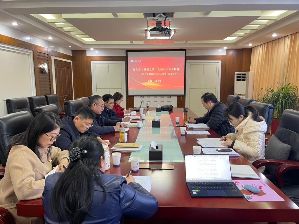 12月3日下午,机关党委理论学习中心组在行政楼二楼会议室举行第七次集中学习会,专题学习党的十九届六中全会精神。校党委副书记史顺良及有关同志到会巡学旁听并进行指导。机关党委班子成员参加学习。会议由机关党委书记韩振响主持。