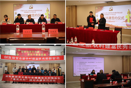 环境与化学工程学院材料教师党支部与安峰镇安北村党总支举行党建结对共建签约仪式。签约仪式上安峰镇安北村党总支书记李从江、环境与化学工程学院党委书记张明星分别介绍了各自党组织基本情况和党建工作开展情况,双方对“结对共建”的意义予以充分肯定,并一致认为要以此为契机,加强学习交流,把党的政治优势化为双方共同发展、共同进步的实际行动。重点围绕“四个一”积极开展活动:共同为群众办一件实事,共同上一次党课,进行一次联合组织生活会,共同进行一次党建共建促膝谈。