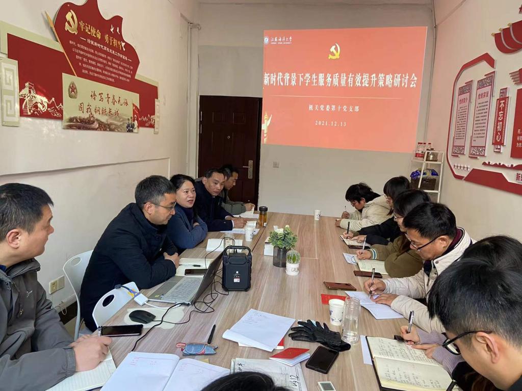 为落实全面从严治党要求,提升基层党建工作水平,扎实推进基层党建“书记项目”,12月13日,机关党委第十党支部举办“书记项目——新时代背景下学生服务质量有效提升策略”研讨会。机关党委委员、校纪委缪克平处长参会指导,支部全体党员和积极分子参加研讨。研讨会由党支部书记张志浩主持。