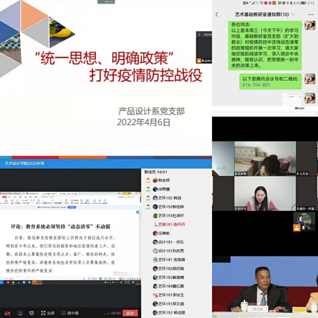 近期,全国本土聚集性疫情呈现点多、面广、频发的特点,连云港市外防输入的压力持续加大,学校是人员聚集场所,疫情防控形势同样严峻复杂。为充分发挥党组织在疫情防控工作中的战斗堡垒作用,进一步扎实做好疫情防控工作,统一思想,提高认识,4月6日下午,艺术设计学院党总支开展了“坚定抗疫信念,筑牢防疫最强堡垒”主题党日在线学习活动。