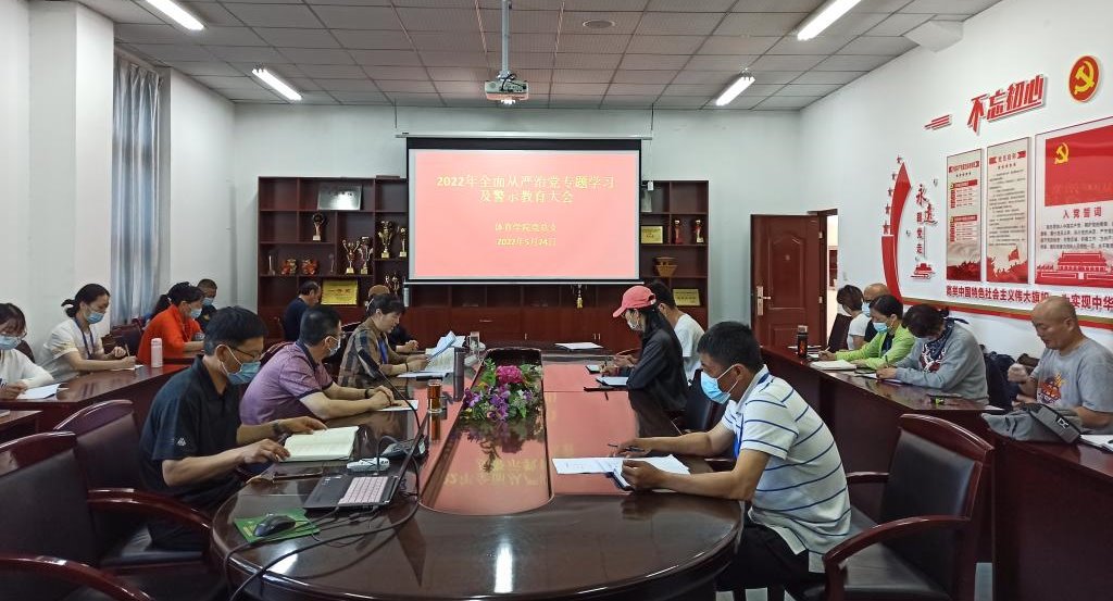 5月24日上午,体育学院在学院会议室召开全面从严治党专题学习及警示教育大会,会议由学院党总支书记张萍主持,学院领导班子成员、各系室中心正副主任、全体党员参加了会议。
