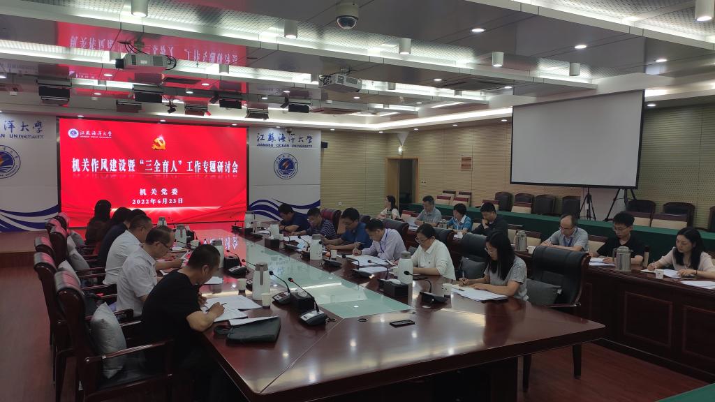 为落实党要管党、全面从严治党要求,不断加强和改进机关作风建设,提高机关管理育人、服务育人质量,6月23日下午,机关党委在会议中心东海厅召开机关作风建设暨“三全育人”工作专题研讨会,全体机关党委委员、党支部书记参加会议。机关党委书记韩振响主持会议。