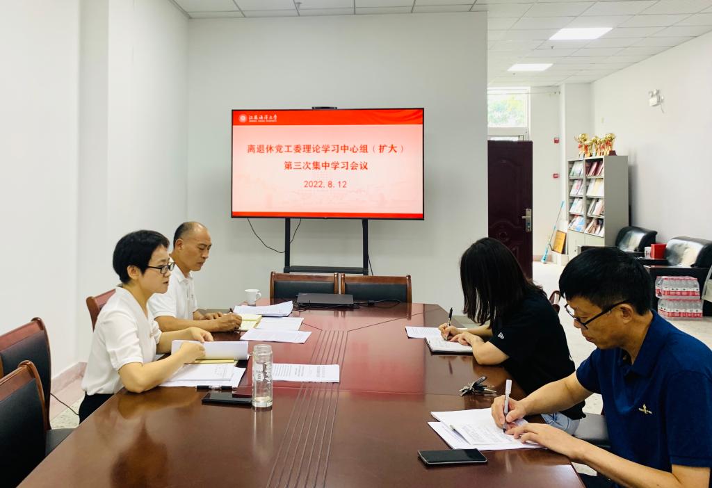 8月12日下午,离退休党工委理论学习中心组第三次集中学习会议在筑海楼104召开。党工委领导班子及在职党支部全体党员参加了学习,会议由离退休党工委书记钱汉珍主持。