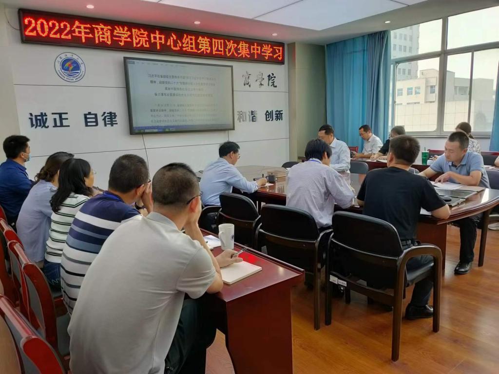 8月31日下午,商学院党委理论学习中心组在文渊北楼355召开第四次理论学习会议。全体院领导、支部书记、系主任和各部门负责人等20余人参加会议,会议由商学院党委书记万金店主持。