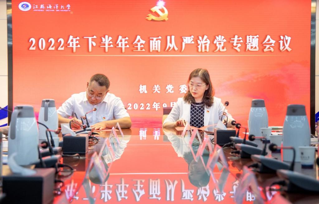 9月29日上午,机关2022年下半年全面从严治党专题会议在会议中心东海厅召开。校党委常委、党委组织部部长、党校副校长、党委统战部部长纪延光出席会议并讲话。全体机关党委委员、党支部书记、各党支部纪检委员及机关2022年“三育人”先进个人获奖同志参加会议。会议由机关党委副处级专职纪检委员王建密主持。