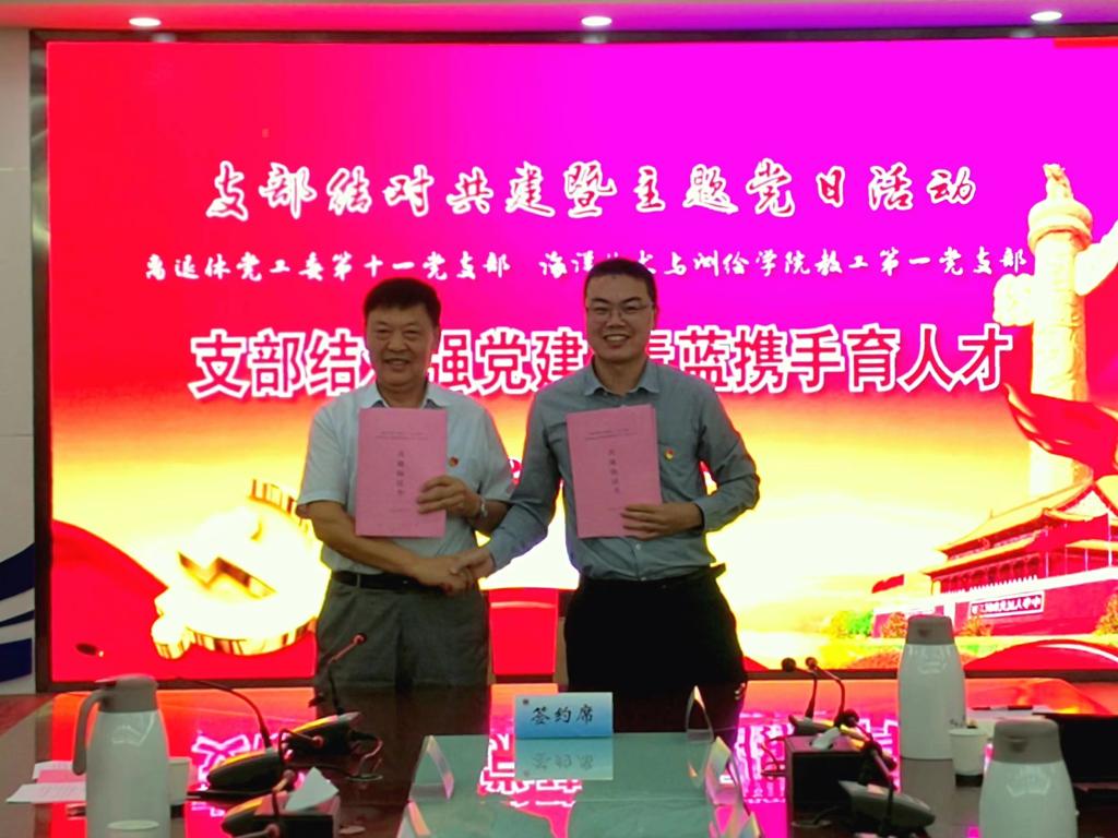 9月28日下午,重阳节前夕,在离退休党工委和海洋技术与测绘学院党委的精心组织下,离退休党工委所属的第十一党支部与海洋技术与测绘学院党委所属的教工第一党支部共建仪式在会议中心黄海厅隆重举行,副校长李梅英出席,两个基层党委的班子成员以及共建党支部的全体党员和教师参加。离退休党工委书记钱汉珍主持共建仪式并致辞。