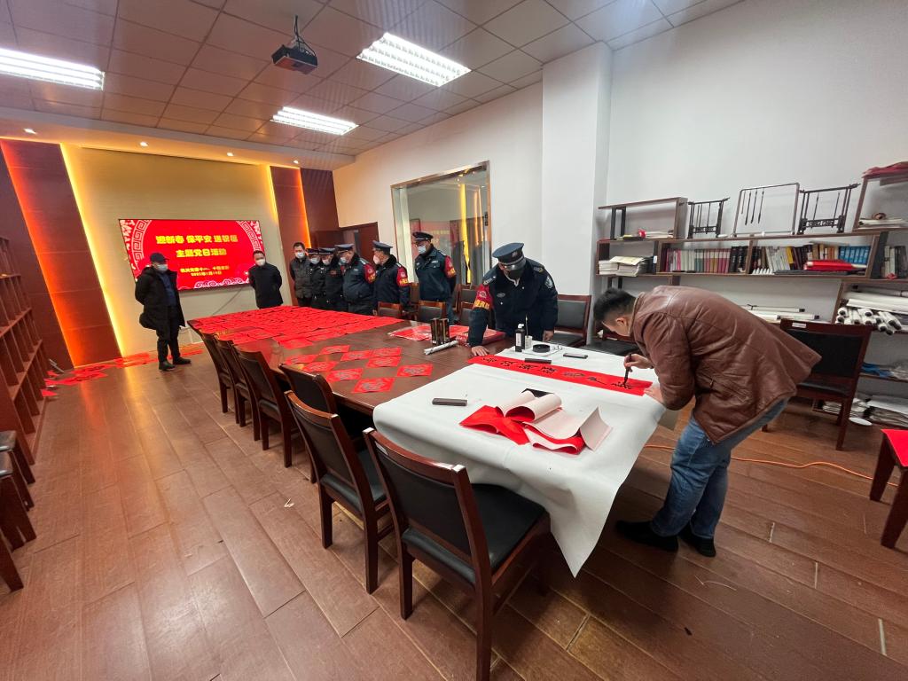 “这副春联我一定要倍加收藏,这年过的更有意义了”一名保卫人员接过第十一党支部副书记王衍写的春联后笑着感慨道。党日活动以亲手书写春联的方式为支部党员、保卫人员送上新年祝福,活动过程中,有的同志精心挑选春联内容,有的同志小心翼翼的将墨迹未干的春联铺开晾晒......整个会议室洋溢着浓厚的新年气息。