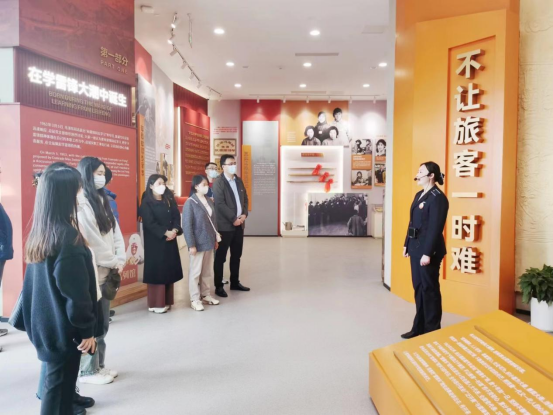 在展馆参观学习过程中,跟随着讲解员的脚步,大家详细了解了“雷锋车”组的感人事迹。半个多世纪以来,“雷锋车”组的人员换了一代又一代,服务方式也不断更新升级,不变的是“雷锋车”为旅客服务、勇于担当、心系群众的初心。“雷锋车组”的服务工具从最初的三条木扁担,历经木板车,铁板车、人力三轮车、电动车,现在换成了观光旅游车。“雷锋车组”的服务工具的变迁不仅体现了与时俱进,也反映了一代又一代雷锋车手服务能力的不断提升。