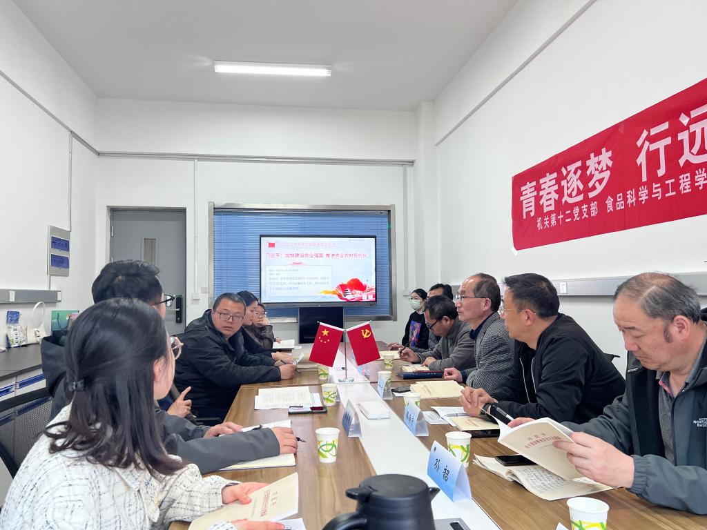 3月30日下午,机关第十二党支部、食品科学与工程学院本科生党支部以“青春逐梦 行远思恩”为主题在测绘楼201会议室开展主题党日活动。机关第十二党支部书记、招生与就业处处长马恒通、副处长骆海宏,食品科学与工程学院党总支书记张兵、副书记郭利、本科生党支部书记陈丽媛以及双方党支部党员共同参加活动。